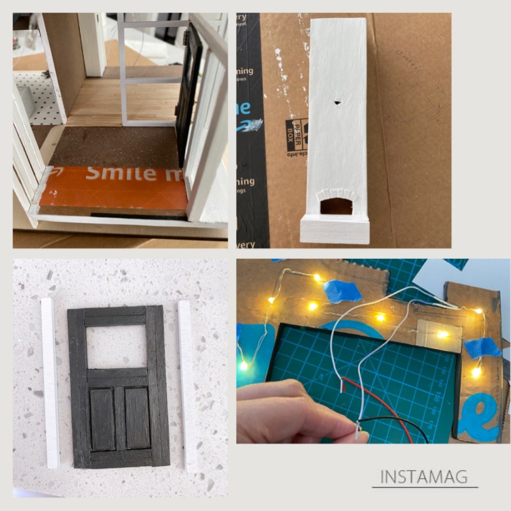 - Expanded the space: I had big dreams for this little house, so I had to expand it. Added on a front door lobby, a second-floor bathroom, and a backside kitchen using cardboard. Wasn’t as hard as I thought, but I had to double up on the cardboard layers. First time working with cardboard, too.